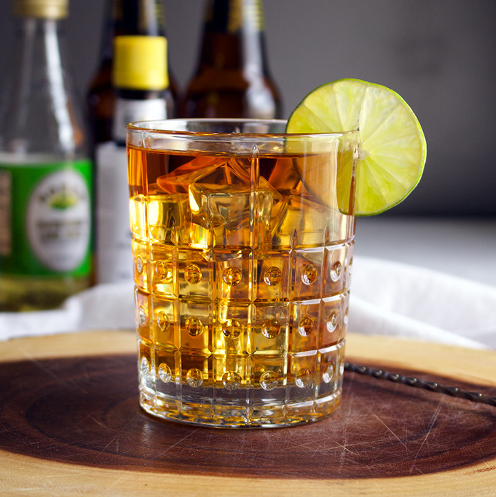 Налити бренді та імбирне пиво у хайбол з льодом. Обережно перемішати.