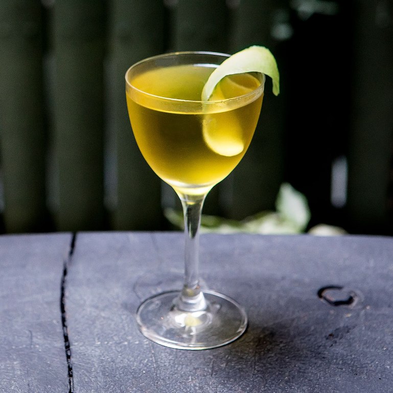 Струсити всі інгредієнти з льодом у шейкері та процідити в охолоджений коктейльний келих